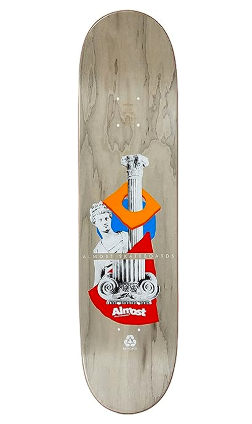 Almost have produced a long life deck with a strong pop for skating. It comes with an industry standard 7-ply and mellow concave.