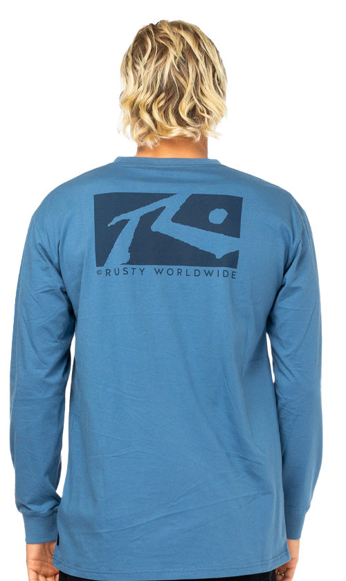 Rusty Boxed In Mens Long Sleeve Tee China Blue