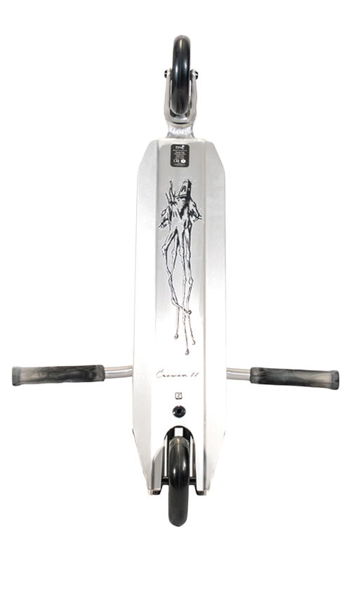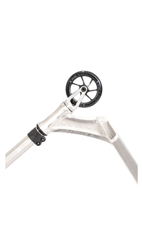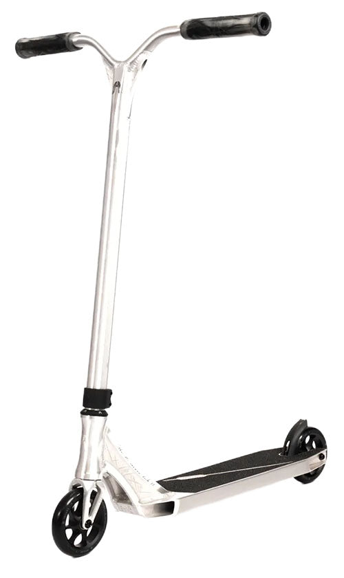 The Ethic Erawan v2 Scooter Complete Medium Neo Chrome is a park-style, lightweight, and responsive pro stunt scooter. It features a 500mm Erawan V2 deck and 620mm Dryade V2 aluminium bars, an IHC compression system, and 110mm Incube V2 wheels. This model is available in a medium size, finished in a striking neo chrome colour, and known for its high manoeuvrability and ease of assembly