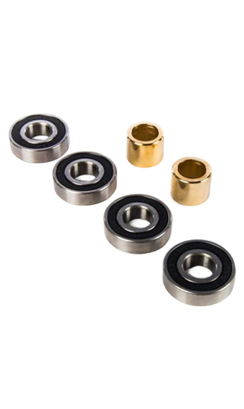 Ethic 12 STD Bearings are perfect for riders replacing bearings on their Ethic Calypso wheels. Smooth, fast rolling is guaranteed with these bigger bearings that are designed to be 12 STD instead of the industry standard 8 STD. These bearings come in packs of 4, with two aluminium spacers included, ensuring your wheels stay in perfect shape. They are sealed so you know your bearings are protected from debris, such as water, dirt and sand, to ensure your wheels keep rolling at maximum speed. With these Ethic 12 STD Bearings, you'll be able to ride with the most speed and least worries.
