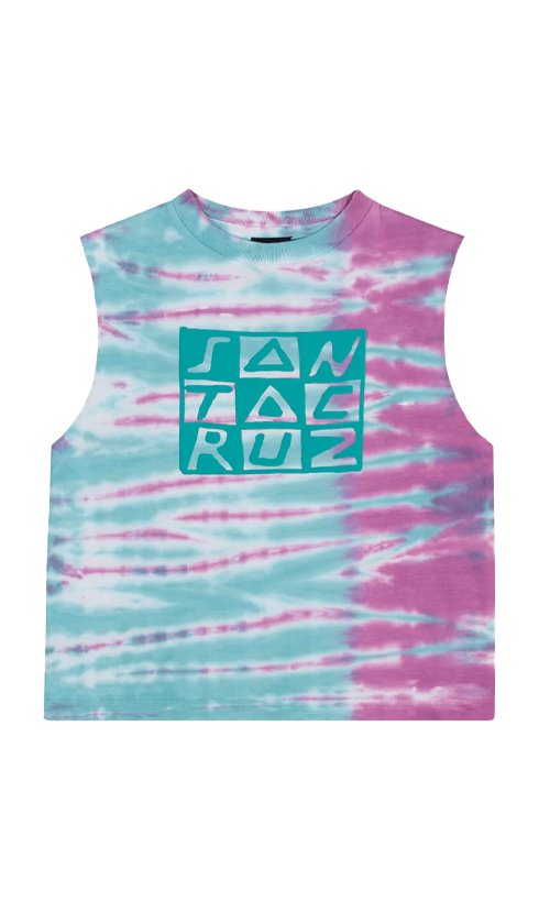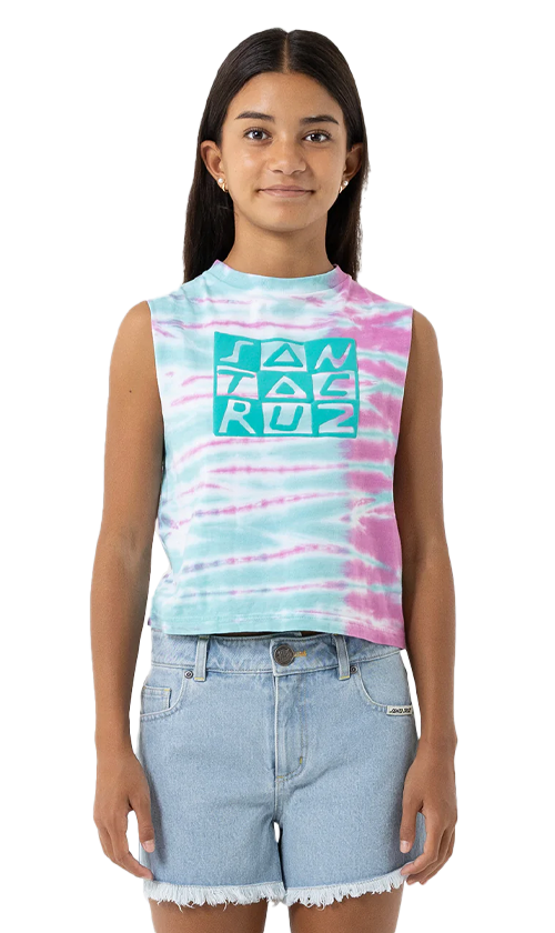 Santa Cruz Checker Block Front Youth Muscle Tee Ocean Tie Dye