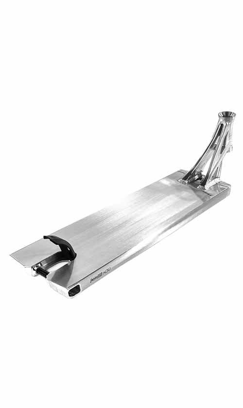 The latest version of the Lindworm has arrived! The Lindworm v4 now comes with square dropouts that are similar to the Vulcain deck to improve the strength and lifespan of the back dropouts. The front of the deck also received some updates. The blunt plate has been redesigned to have grooves to lock into crook grinds easier, and will also help with nose blunts. The bottom of the Lindworm remains the same with the dual grind rail system. This system is better than an all flat bottom because it will produce less friction, and will therefore grind smoother. The deck comes in two different widths being 5.9", 6.3", and 6.7" so there's a size for everybody! Finally, the Lindworm v4 is capable of fitting 12 STD and 24mm wide 8 STD wheels, and comes with all necessary hardware to run both options.