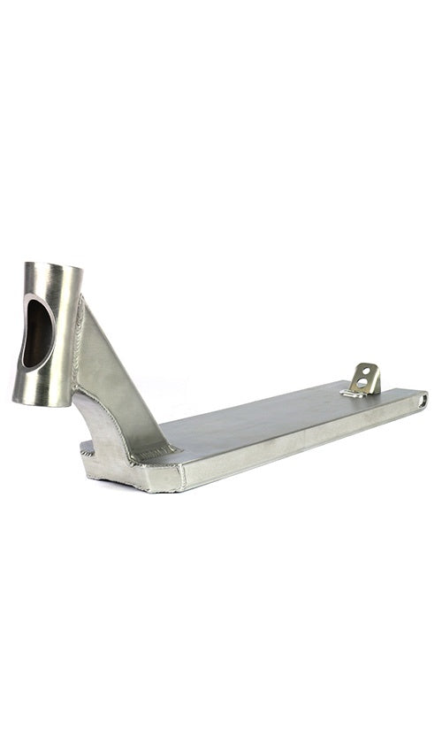 This new extrusion has enabled a reduction in weight and increase in strength. This 600mm deck with boxed ends offers a style of deck that is suited for street and technical riders, although, the weight of the deck will allow riders to enjoy park riding as well.