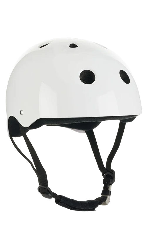 The "Yepa T-Shell Certified Helmet Gloss White" is a skateboard and bike helmet with a low-profile fit, a durable ABS shell, and a deep-fit EPS foam liner for impact protection.