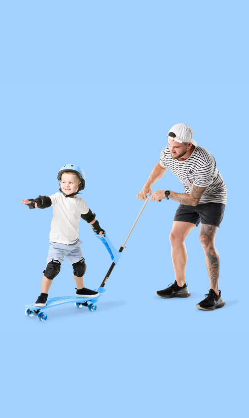 Ookkie Skateboard is the world's first patented learner skateboard, a fun and exciting activity for parents and children to enjoy together. Help develop balance, coordination, core strength, and self-confidence within your little one.