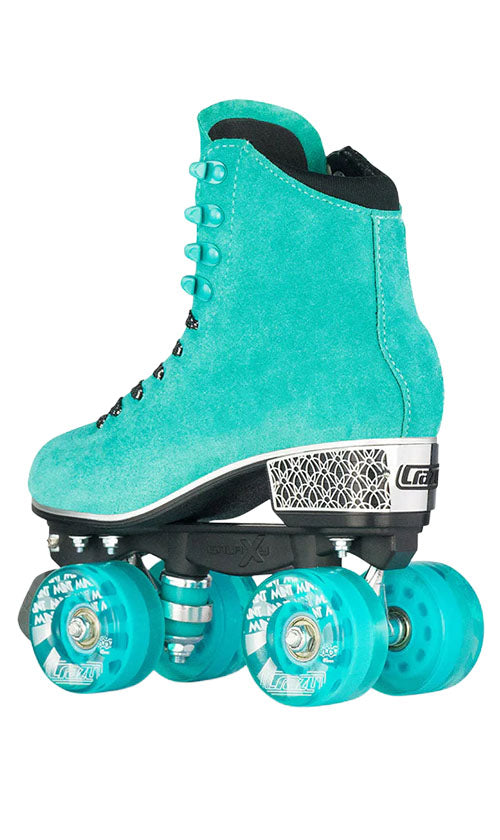 Ultimate style comes in the form of our flagship roller skate - the EVOKE. Taking inspiration from haute couture, the Evoke is a true designer skate, melding Suede leather with Laser Cut Steel to create a visually striking skate that feels as good to hold as it does to skate. Featuring a handcrafted suede leather boot and Crazy’s own last, this will be the most comfortable skate you will ever wear. The form fitted ankle area and neoprene lined tongue will shape to your unique foot shape from the very first wear.