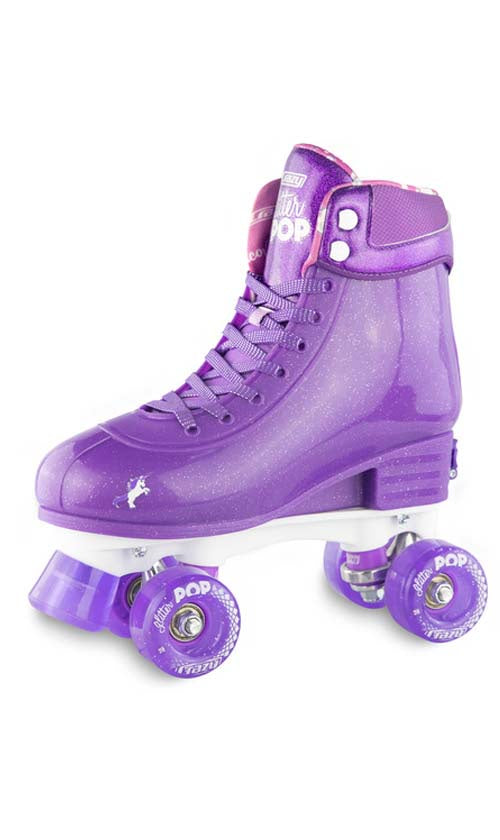 The Glitter POP has been designed to ''stand out from the crowd'. Featuring a classic retro design with a bright glitter rolled collar make these perfect for developing skaters who want the ability to skate either indoors or out, while wearing comfortable fitting skates and making a real fashion statement!